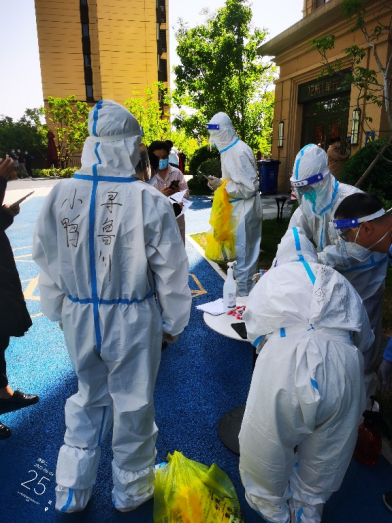 由于一直在高溫下“全副武裝”,志愿者的防護(hù)服早已被汗水浸濕,手掌被泡得發(fā)白,臉上也被口罩勒出了痕跡,更有志愿者出現(xiàn)了頭暈、流鼻血等中暑癥狀。盡管如此,他們也是稍加休整,便再次沖鋒向前。休息時間,志愿者們席地而坐,匆匆吃完奔赴崗位,因忙碌而錯過飯點(diǎn)更是常事,然而他們卻從未有過怨言;腰肌勞損、椎間盤不好的團(tuán)隊(duì)干部即使腰疼的直不起來,也依舊抵擋不住他助力抗疫的熱情與行動?!▲喼驹刚邔敶ㄔ趨f(xié)助核酸檢測時,有一個小男孩很不配合,由于當(dāng)天的核酸檢測并沒有貼紙,男孩媽媽便偷偷準(zhǔn)備了小貼畫,拜托尋魯川給小朋友貼上。尋魯川很感動,并且樂意幫忙,尋魯川說:“他兩只大眼睛直勾勾的盯著貼紙看,特別萌,心都被萌化了,真是開心了一整天,所有的疲憊都一掃而空?!?nbsp;…… 在抗“疫”前線,小鴨人和社區(qū)居民們互相理解,互相配合,如此令人感動又暖心的事跡不勝枚舉。