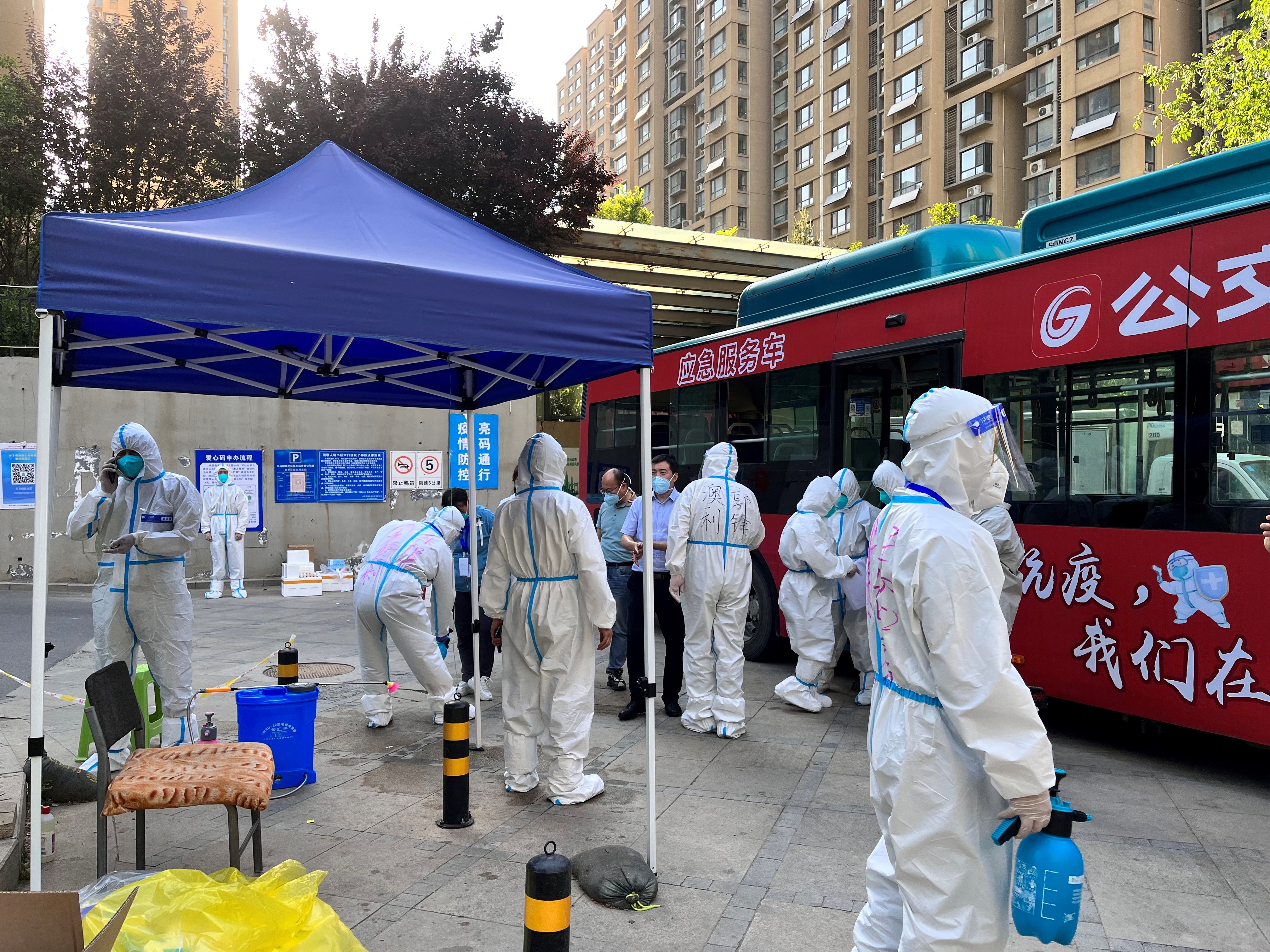 在高新區(qū)的臨港街道十八戶社區(qū)、在歷城區(qū)的天馬相城社區(qū)、侯家小區(qū)等多個社區(qū),到處都能看到澳利抗疫先鋒隊員的身影,他們有的手持測溫設備,堅守進村入口;有的與村里人一起扎帳篷、裝垃圾桶、備檢測器械;有的身穿“大白”防護服,在人群中不斷穿梭、維護秩序;有的走在封控區(qū)的大街小巷,挨家挨戶巡查商鋪開業(yè)情況;還有的拿著酒精噴壺,對指定區(qū)域進行消殺消毒……