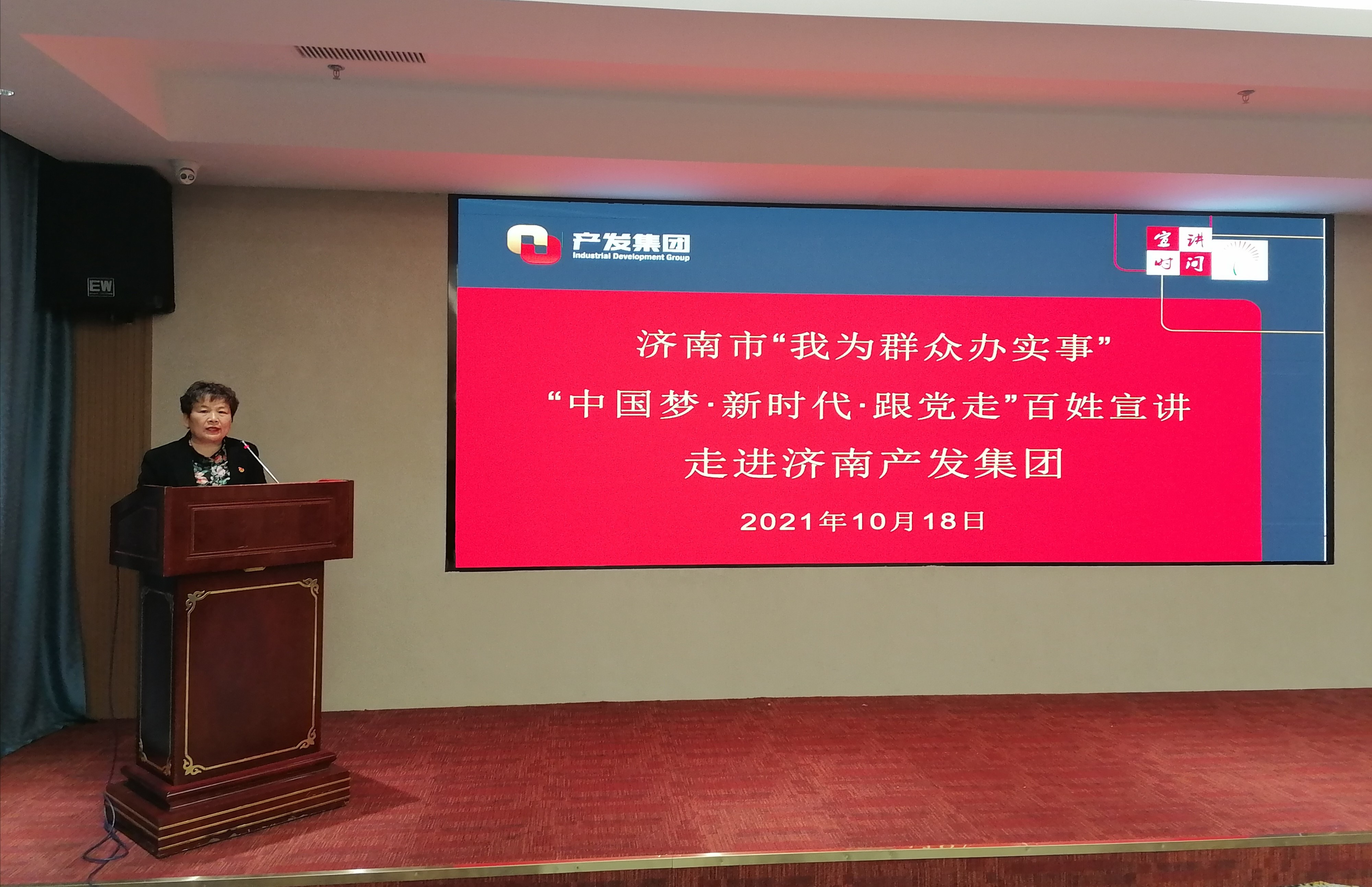 為深入貫徹落實習近平總書記“七一”重要講話精神,扎實推進黨史學習教育“我為群眾辦實事”活動,10月18日下午,濟南市“我為群眾辦實事”“中國夢·新時代·跟黨走”百姓宣講活動走進濟南產(chǎn)發(fā)集團。在市委講師團副處級干部呂桂紅的率領(lǐng)下,“我為群眾辦實事”百姓宣講團的6位宣講員用他們的親歷、親聞、親為,為產(chǎn)發(fā)集團50余名參會干部職工講述“聽黨話、跟黨走、率先垂范、主動擔當、無私奉獻”的動人故事。